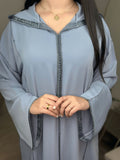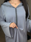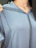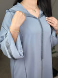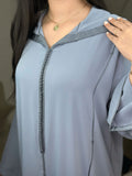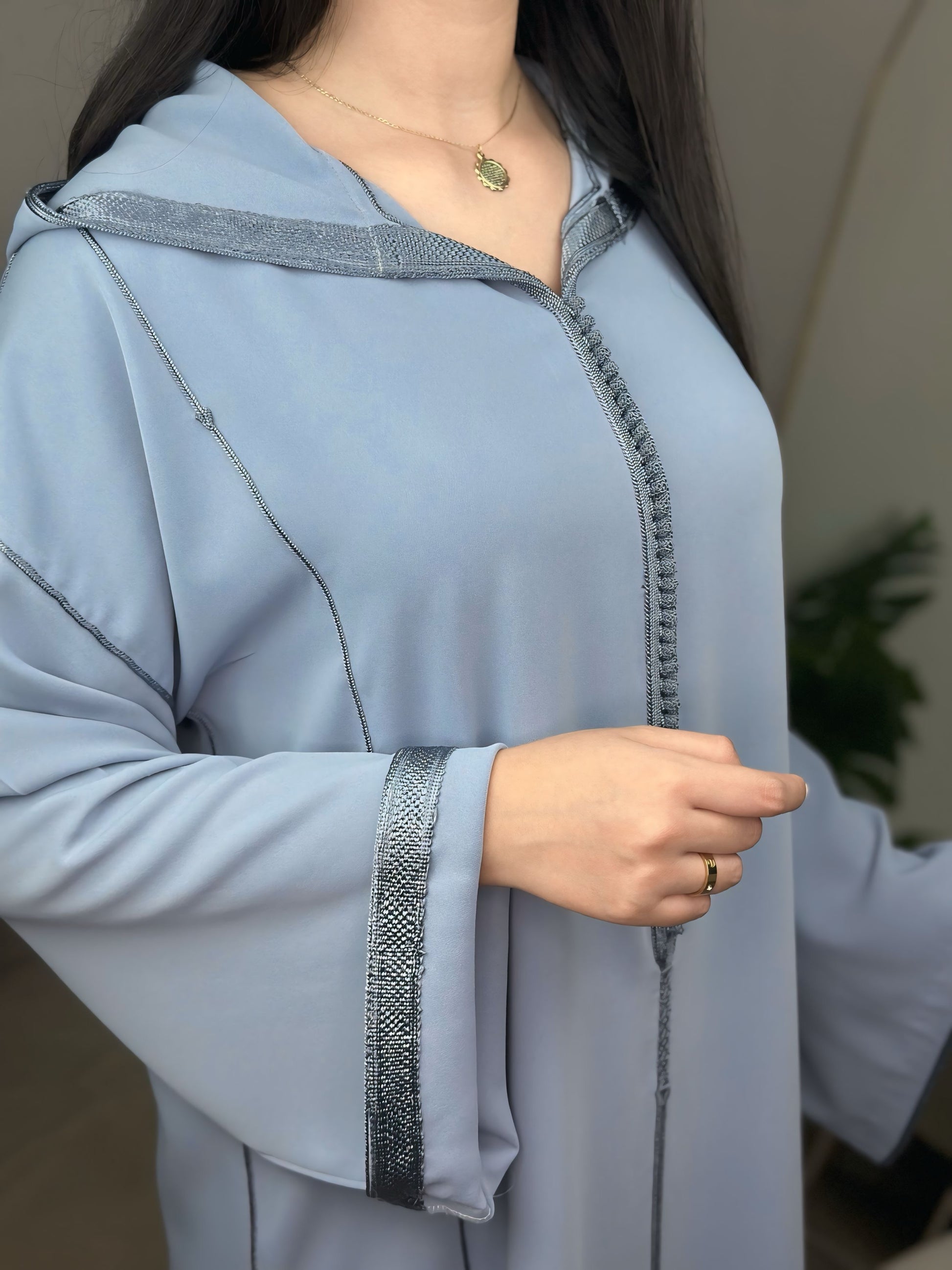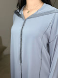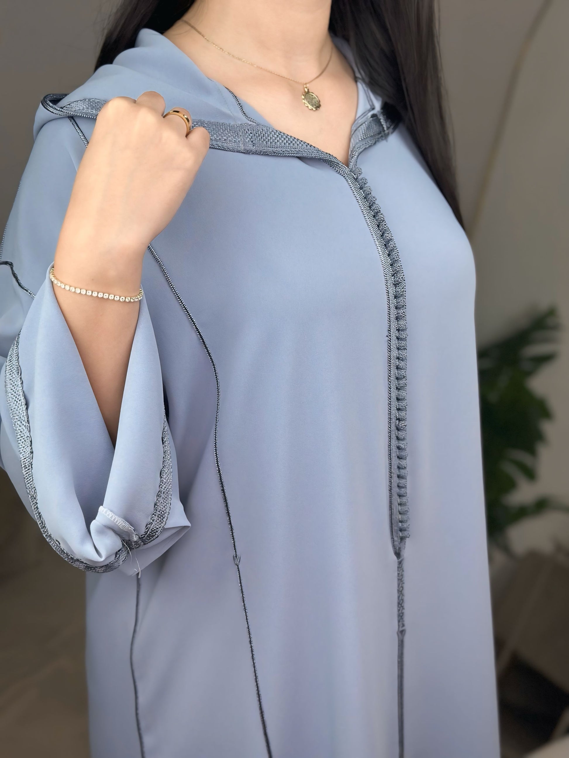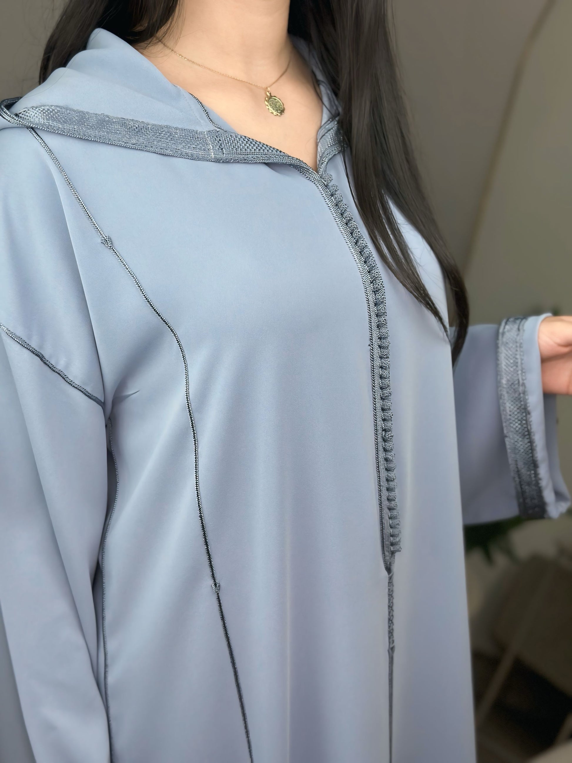 Jellaba en tissu crêpe, travaillée façon Berchmane avec Sfifa Mrema au niveau des manches et de la capuche.