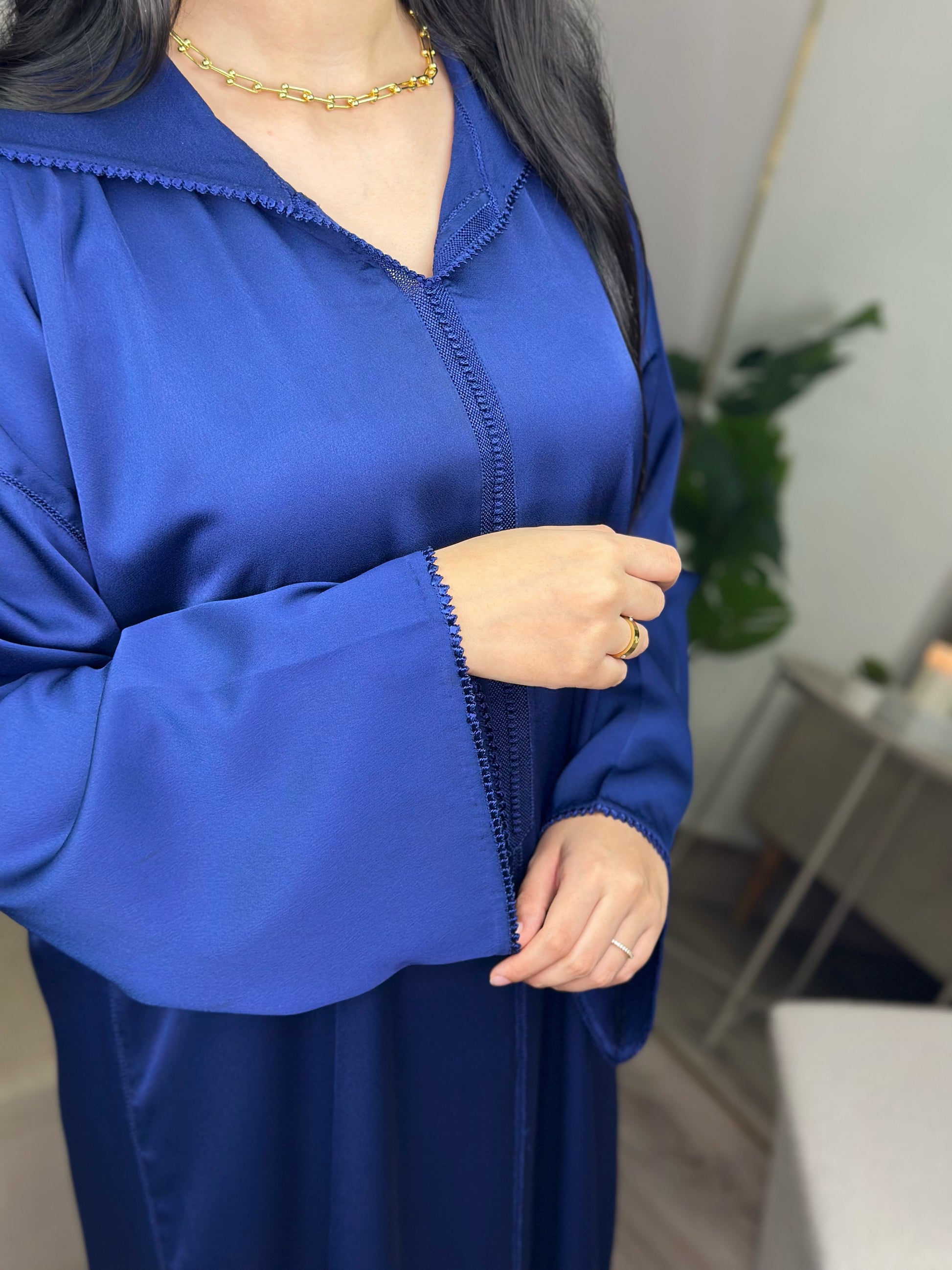 Travaillée entièrement à la main en randa, elle met en valeur une coupe mekhzania fluide et structurée, idéale pour les femmes en quête de distinction et de raffinement discret.