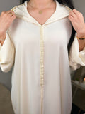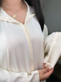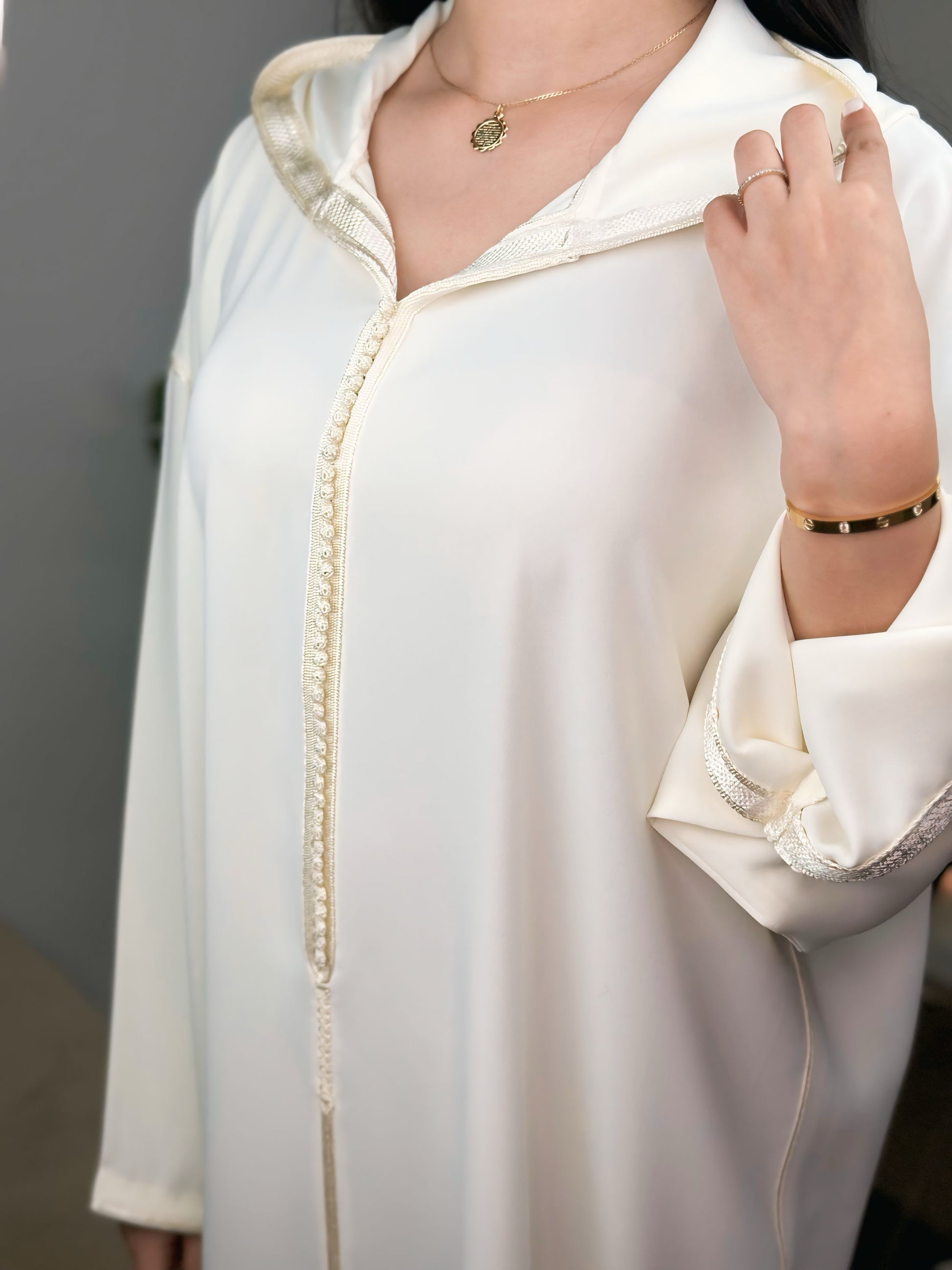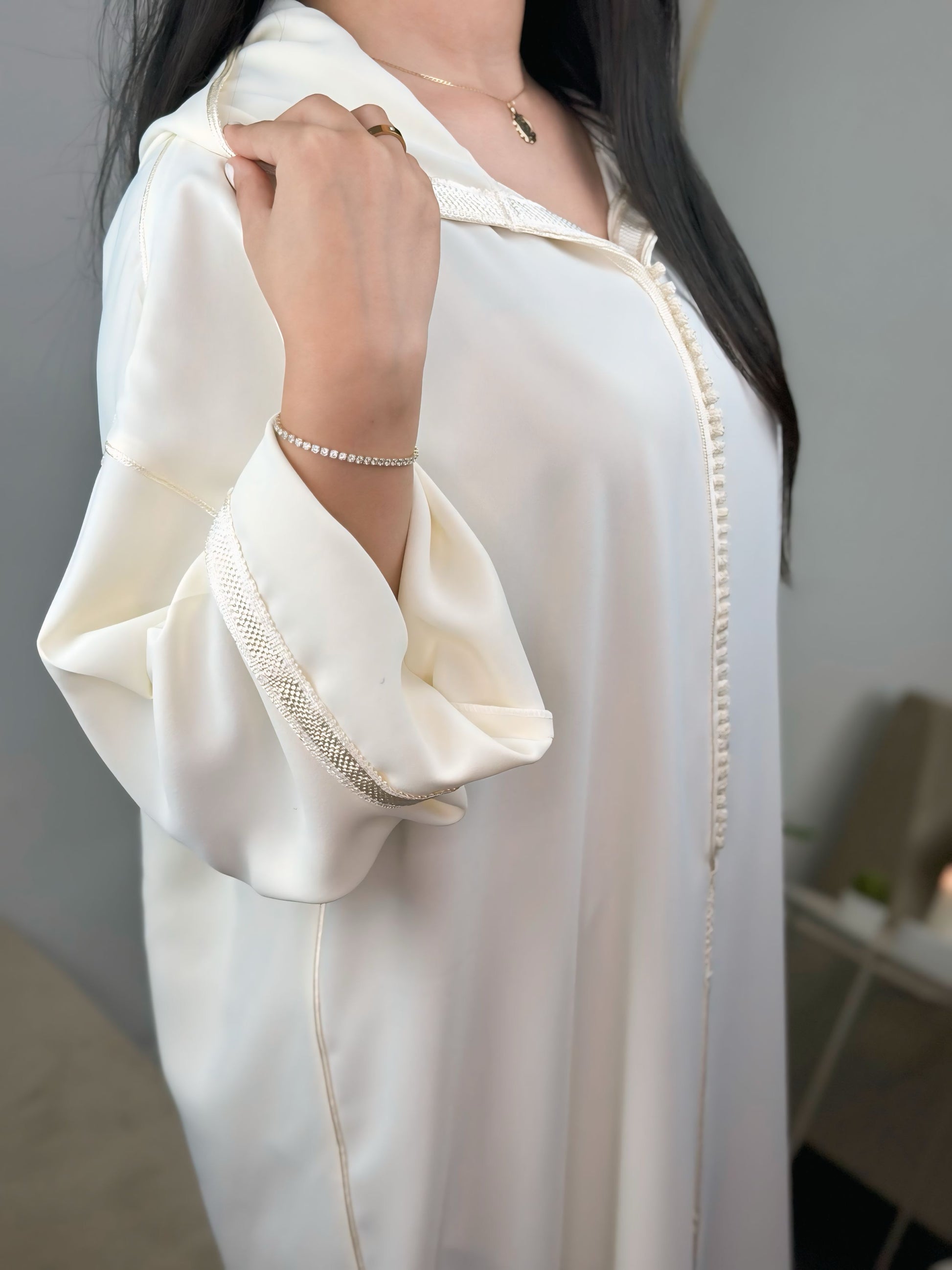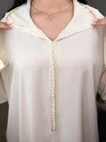 Une pièce tout en douceur et en élégance. Confectionnée dans un tissu crêpe fluide et léger, cette jellaba blanc cassé séduit par sa coupe moderne et son tombé parfait.