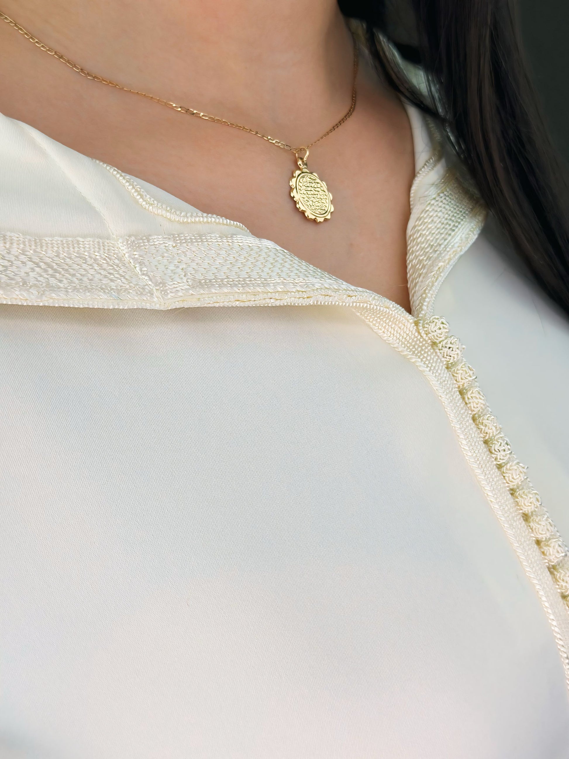 Travaillée façon Berchmane, elle est sublimée par une Sfifa Mrema délicatement posée au niveau des manches et de la capuche, pour une touche à la fois traditionnelle et chic.