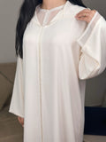 Minimaliste, élégante et intemporelle, la jellaba Zîna incarne toute la douceur de la lumière lunaire. Confectionnée dans un crêpe jacquard de qualité, elle offre une fluidité raffinée et un tombé parfait.