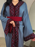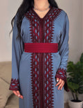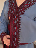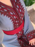 Caftan "Lina" – Gris Perle & Broderies Grenat